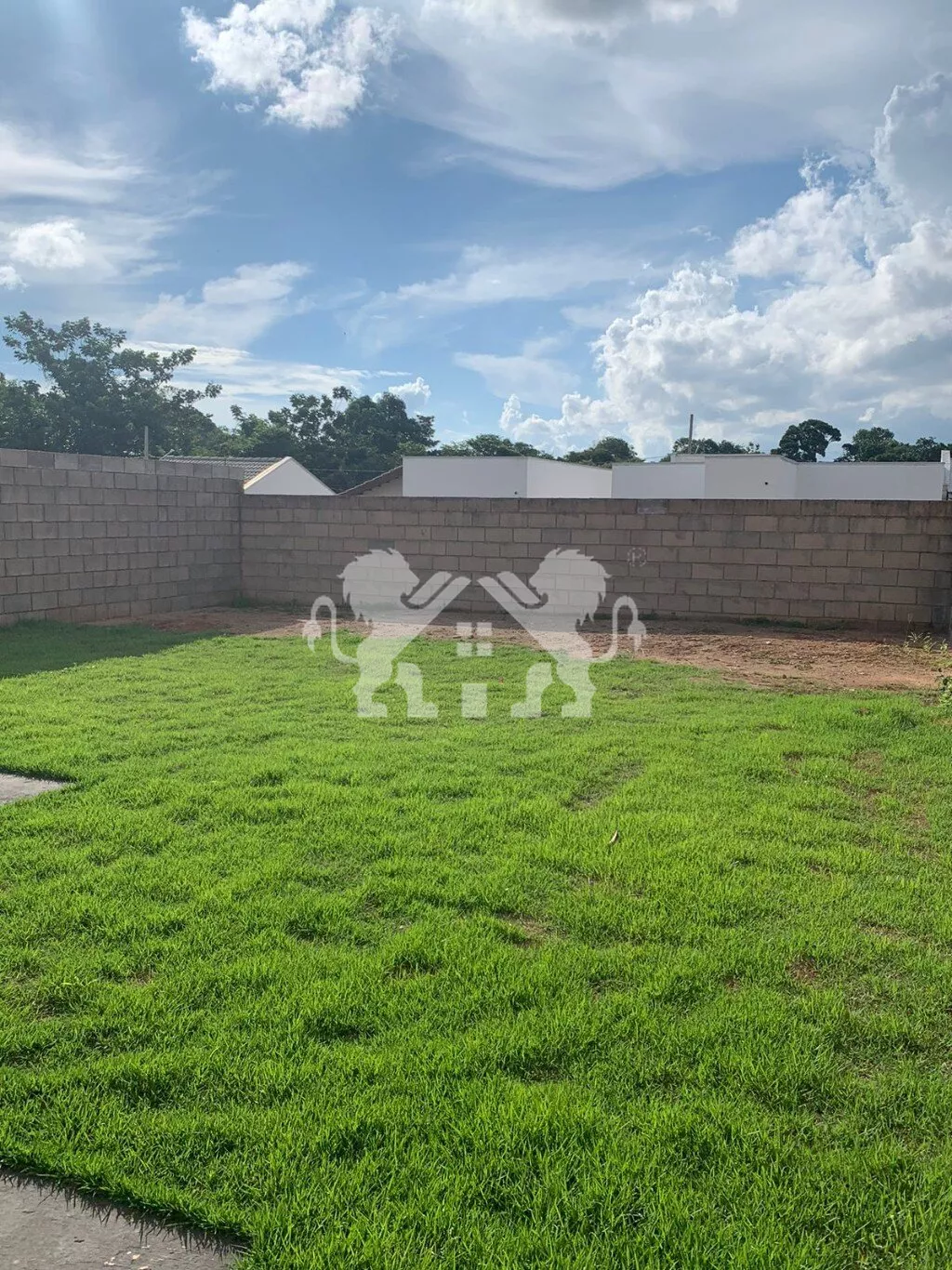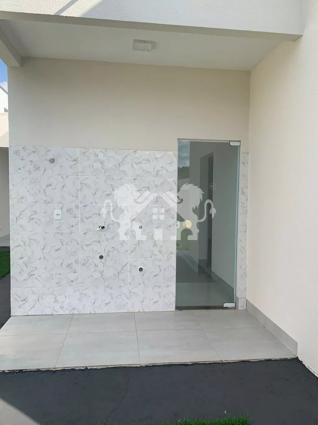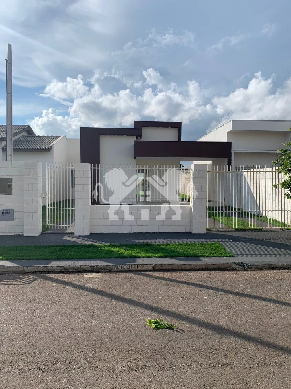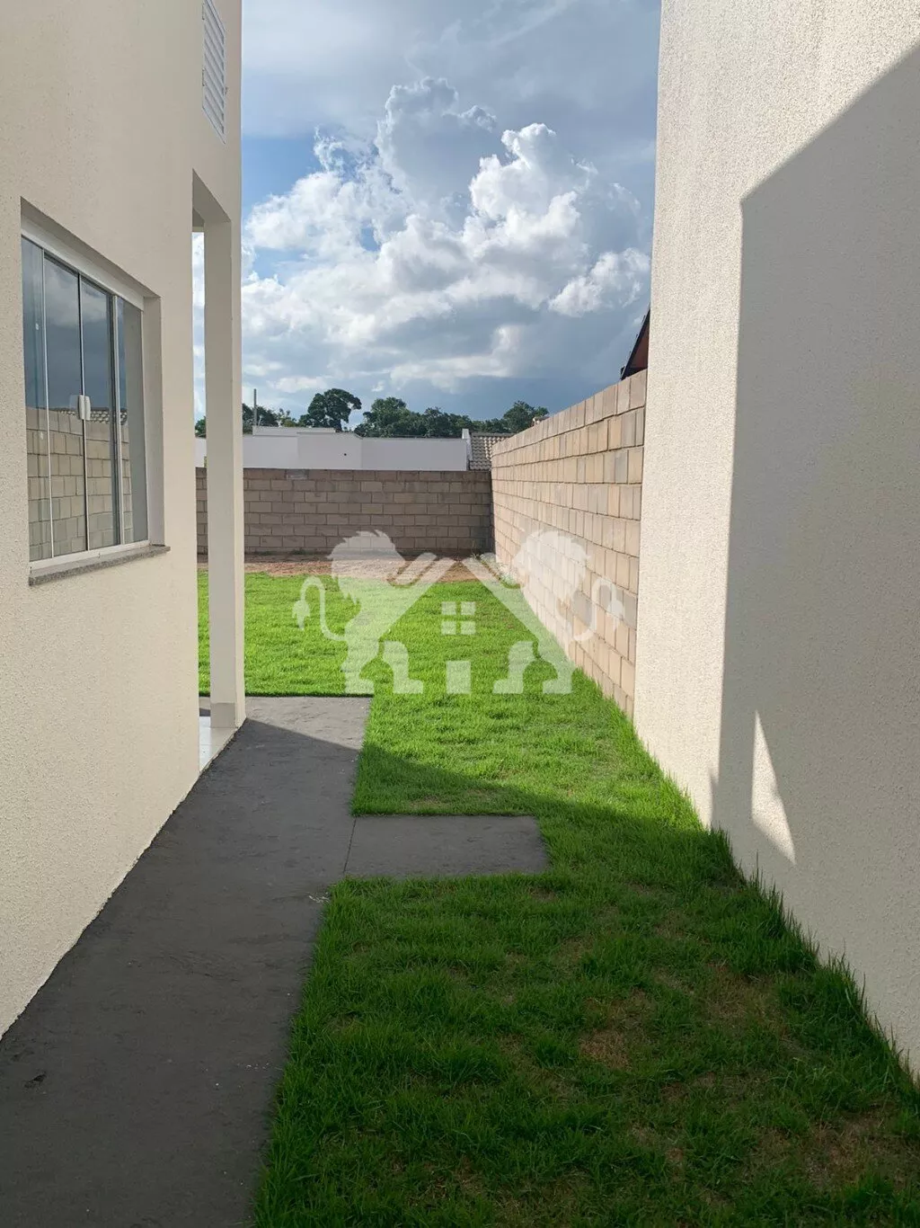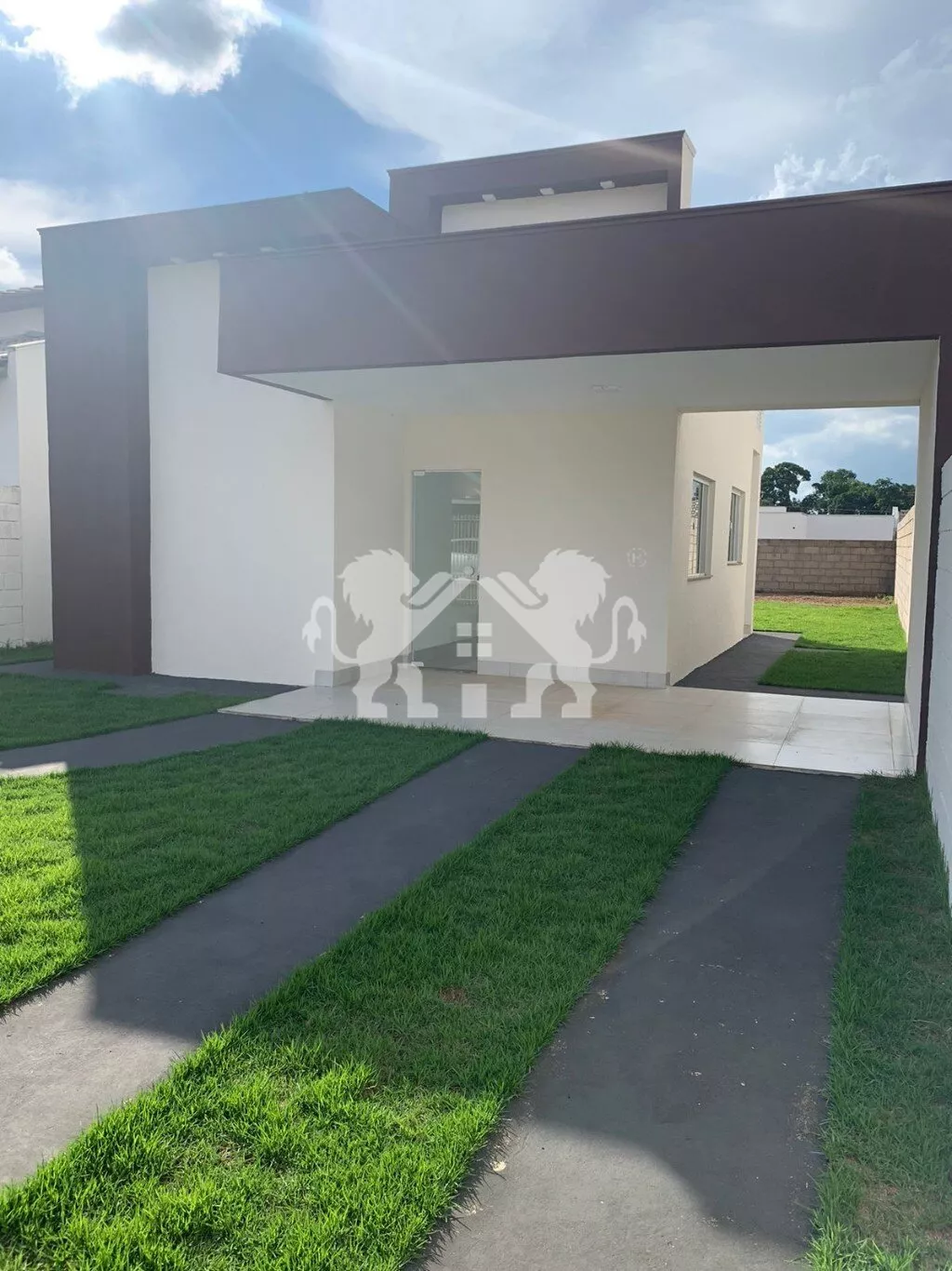 ➡️ calçadas para acesso de veículos e pedestres e grama aos redores da casa