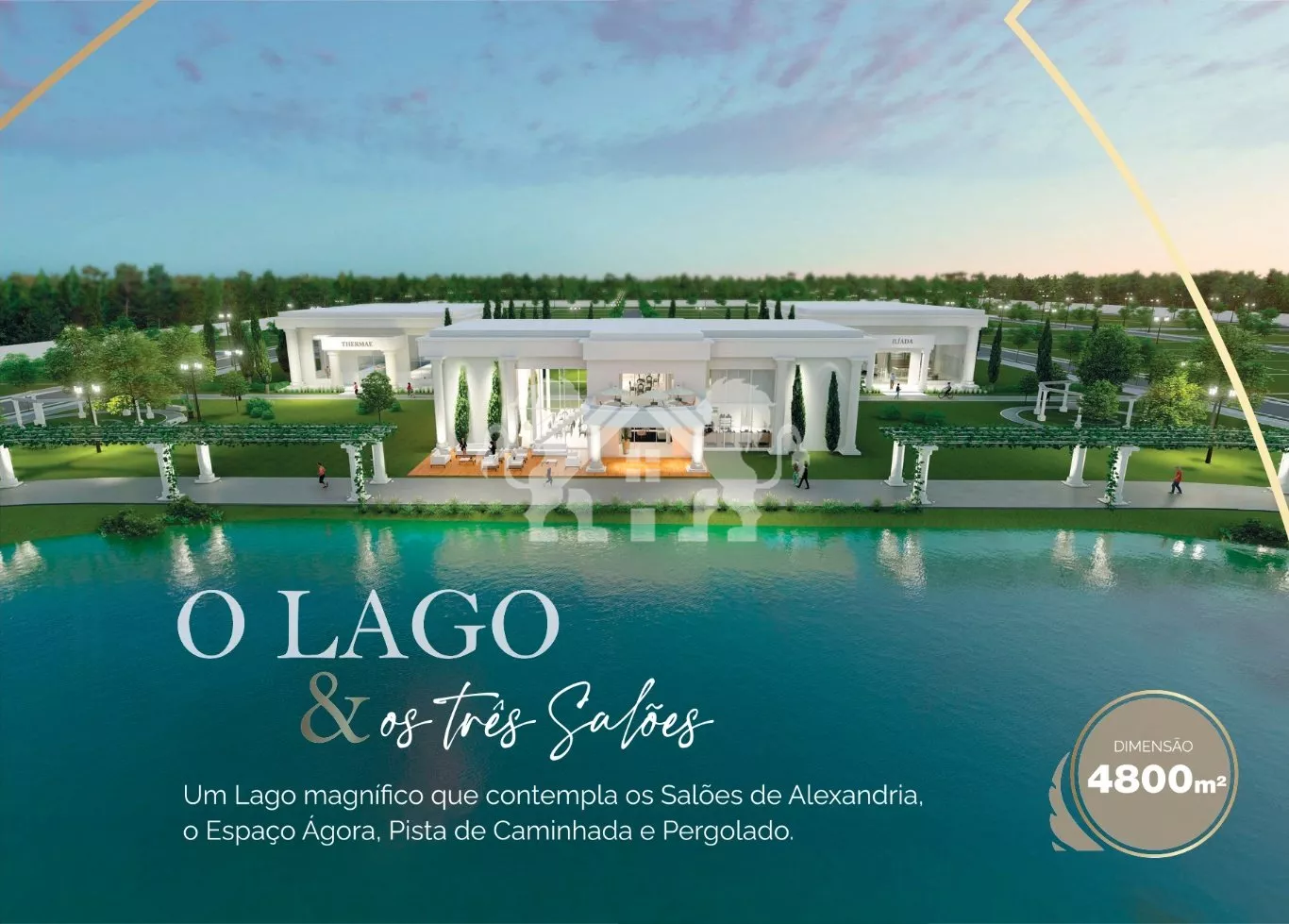 • Pergolado e pista de 150 metros ao redor do lago