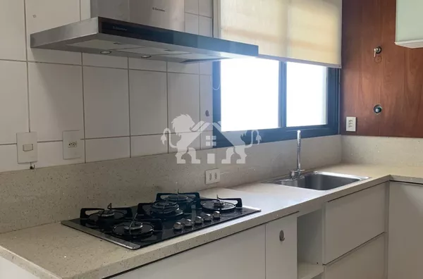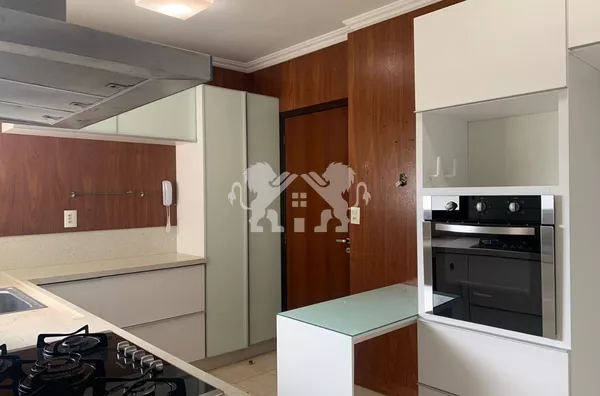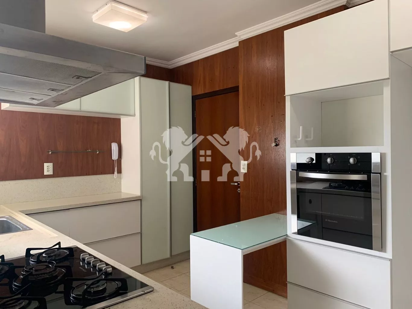 Cozinha com móveis planejados, também conta com cooktop e forno;