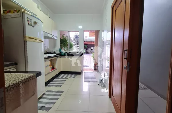 Imóvel possui uma área total de 315m2 e área útil de 180m2: 02 Quartos 01 Suíte 01 Cozinha c/ móveis planejados 01 Área de serviço 02 Banheiro Social 02 Vagas de garagem 01 coberta e 01 descoberta Sala de jantar e estar conjugada Jardim de inverno na sala Obs: Casa na laje , com estrutura para subir 2° piso, porcelanato, madeiramento aparente em canelão, portas e janelas em veneziana (mogno). Imóvel escriturado! Apto a Financiamento!